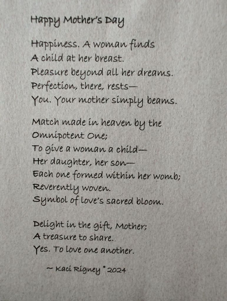 Happy Mother’s Day! May 12, 2024 by , posted in Poems, Lyrics, & Music Share this: Share on X (Opens in new window) X Share on Facebook (Opens in new window) Facebook Like Loading... Related