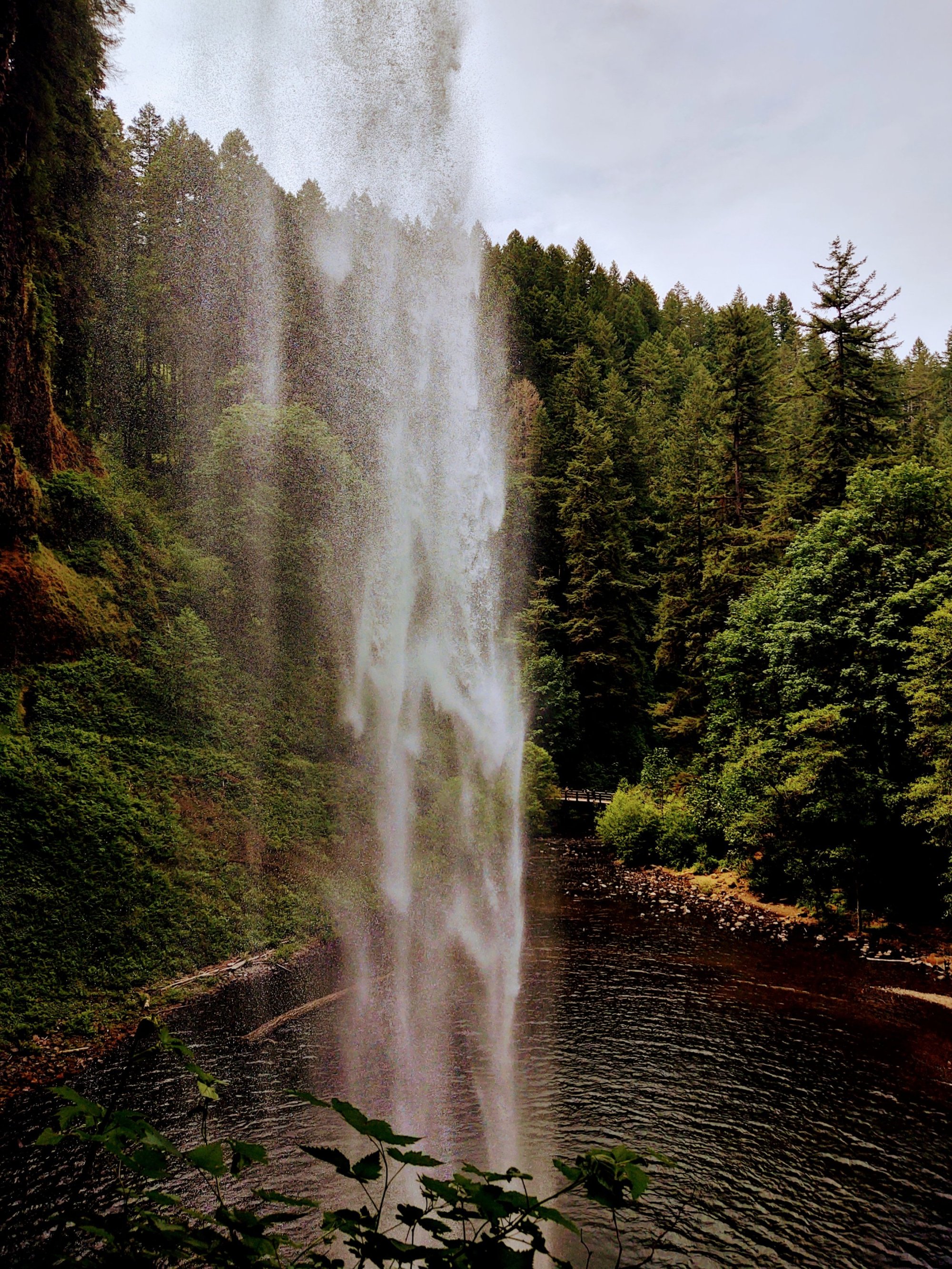 neath a waterfall